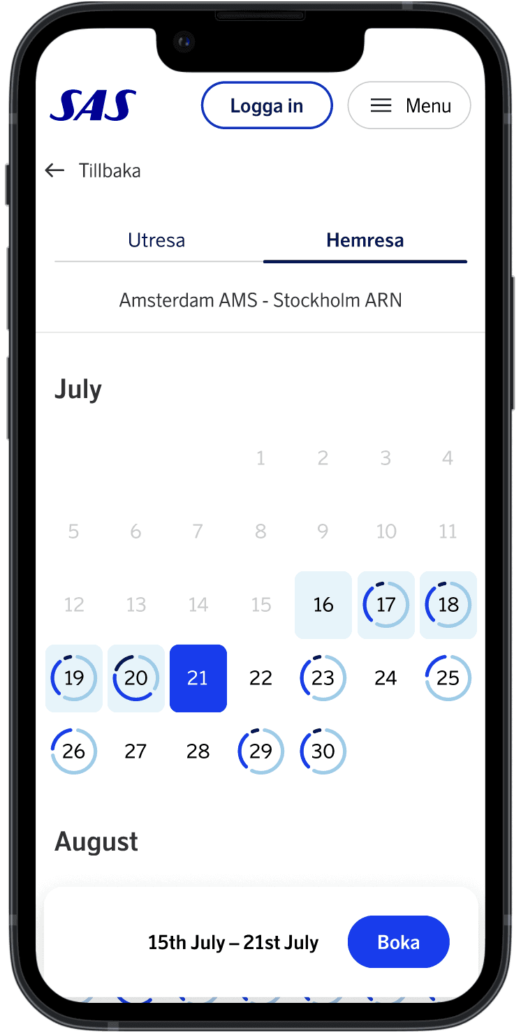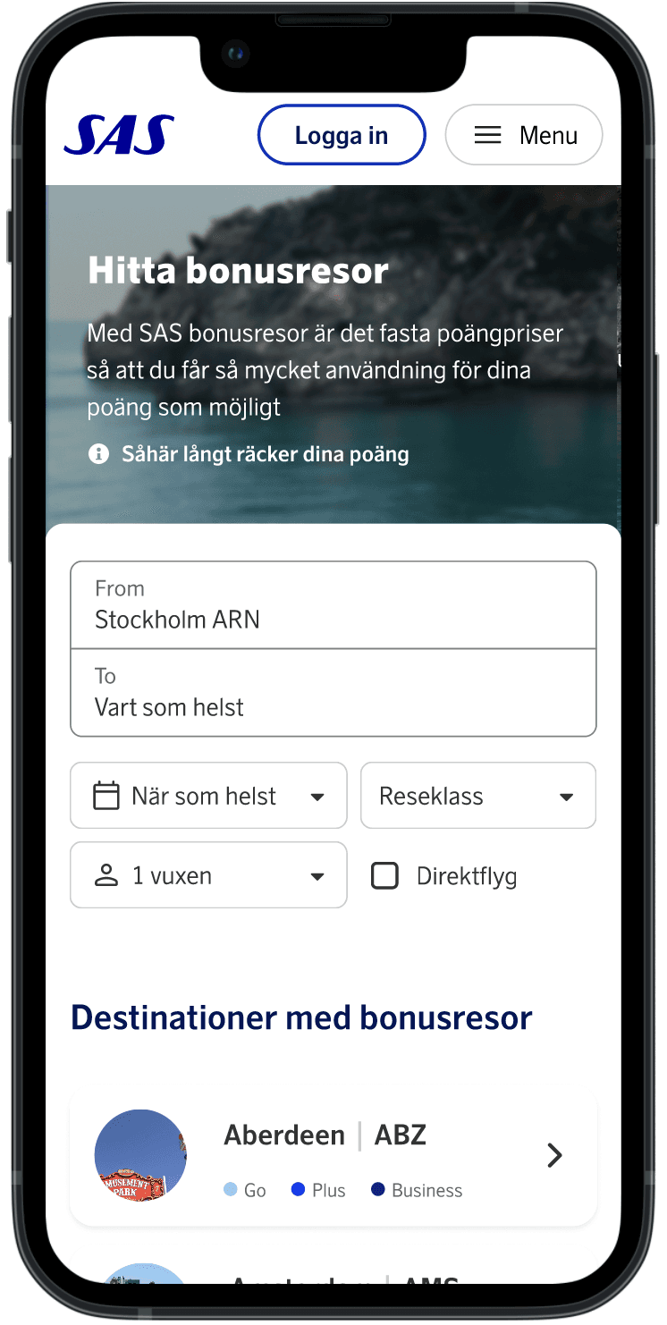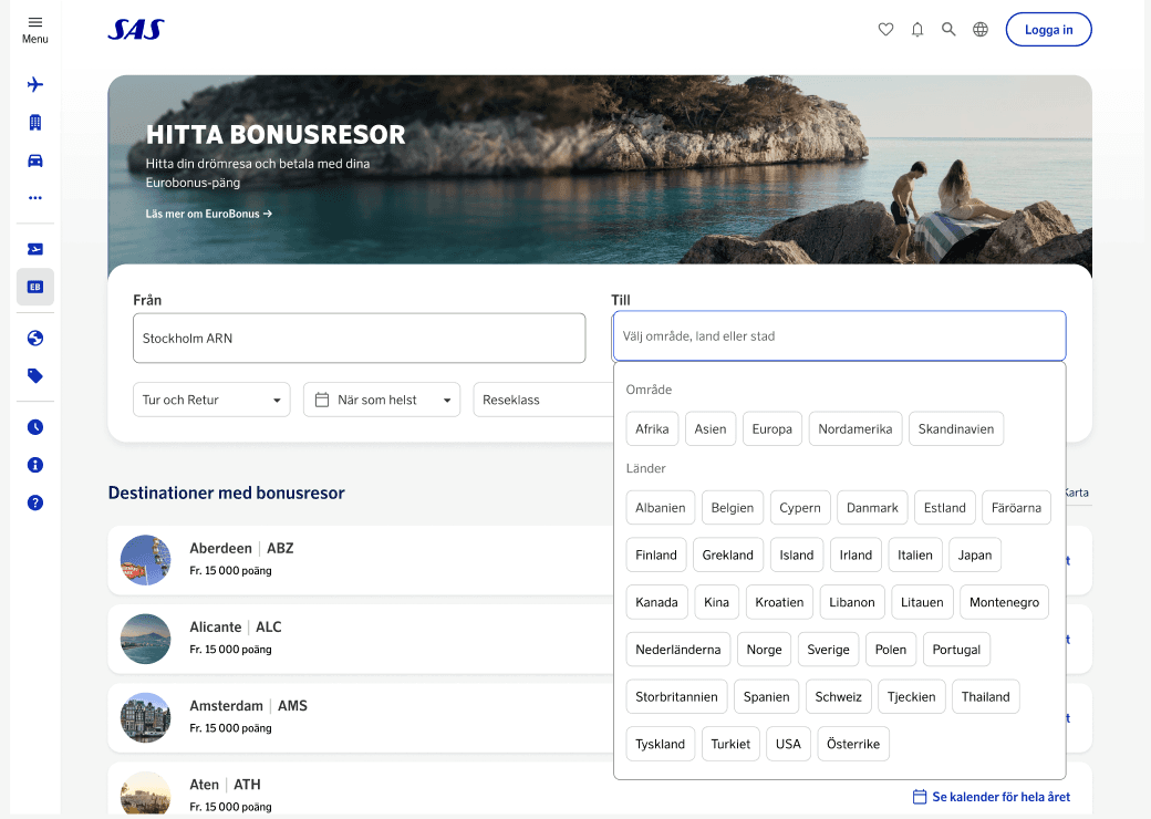 This project was launched to tackle a significant user issue: the absence of a tool for browsing available bonus trips. User insights revealed that EuroBonus members seeking bonus trips often had flexible travel dates and destinations, aiming to get the most out of their points. Our aim therefor was to develop a tool that accommodates both flexible and fixed travel plans.
