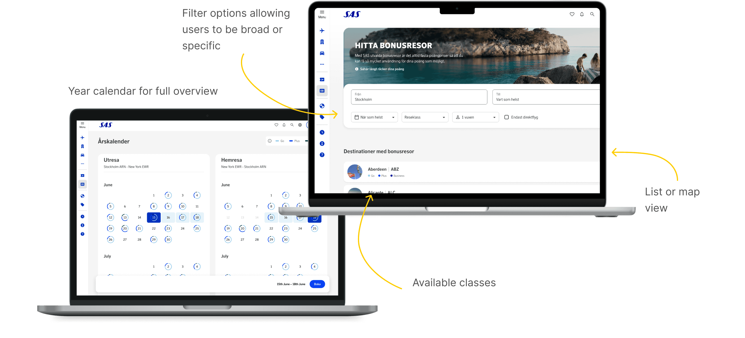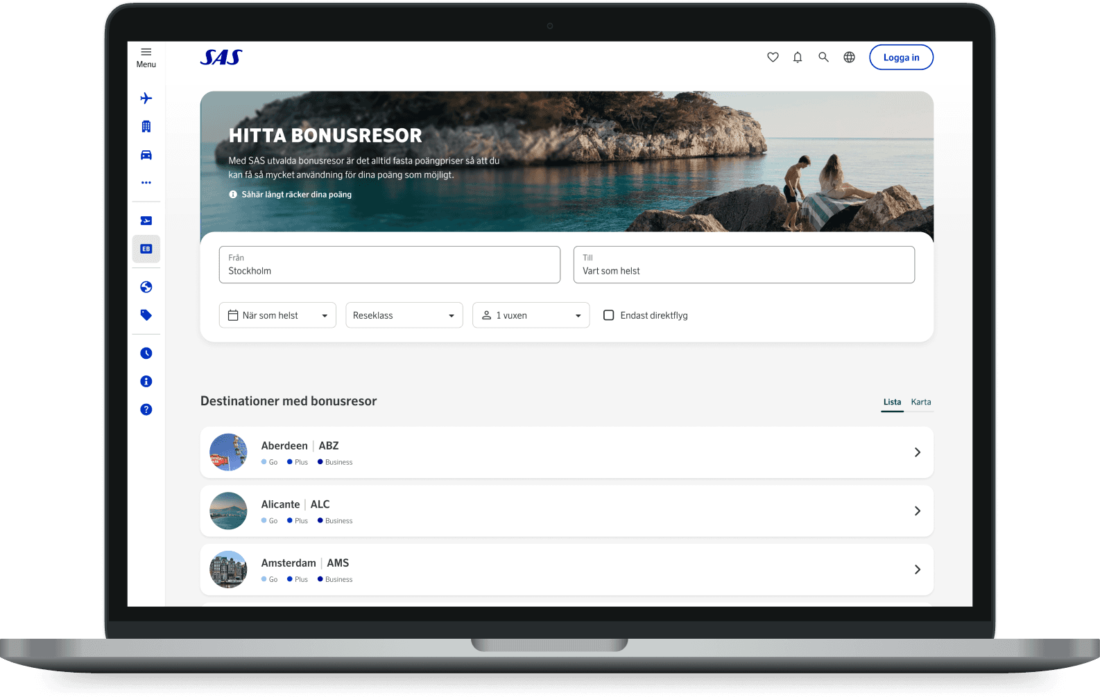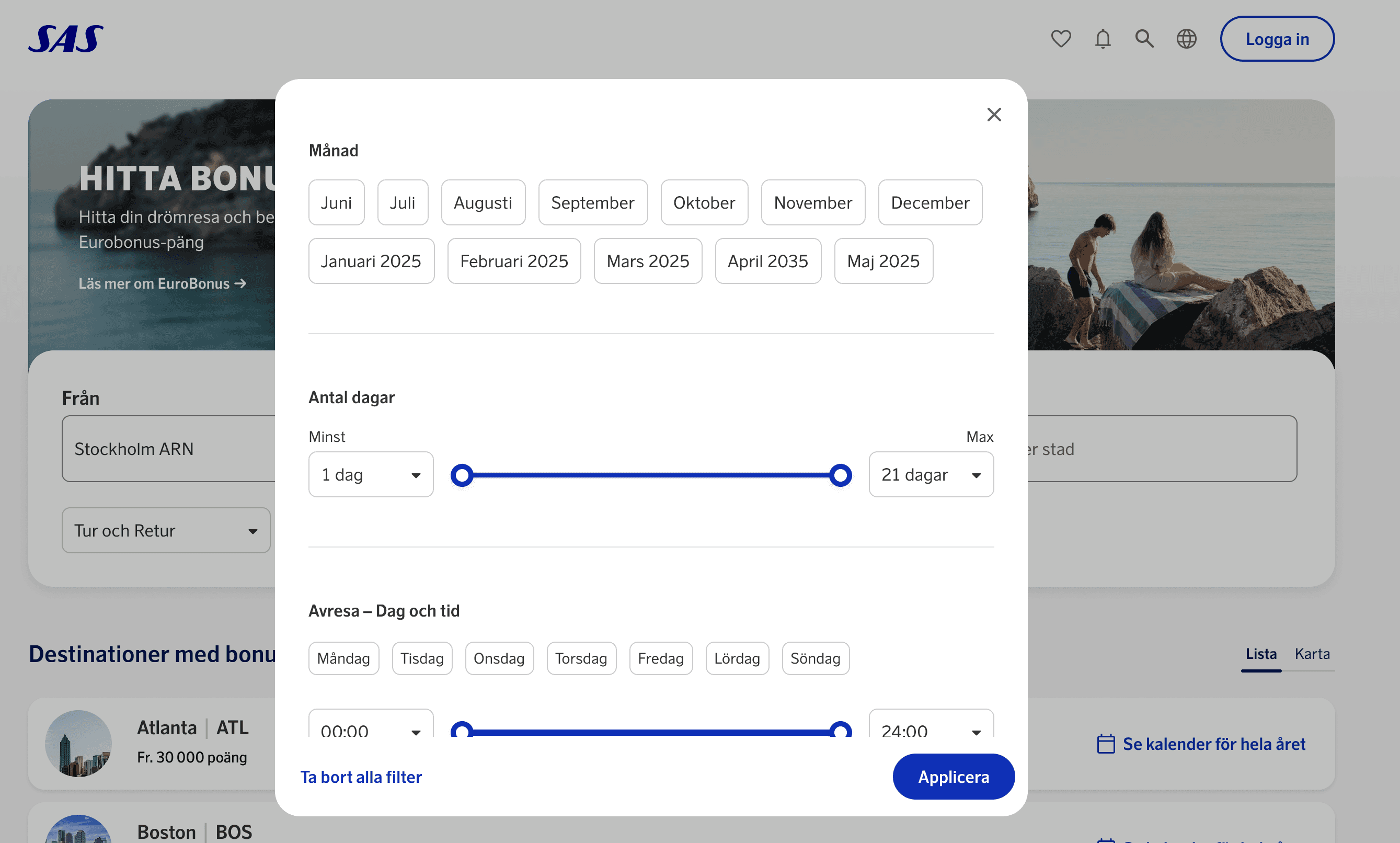 This project was launched to tackle a significant user issue: the absence of a tool for browsing available bonus trips. User insights revealed that EuroBonus members seeking bonus trips often had flexible travel dates and destinations, aiming to get the most out of their points. Our aim therefor was to develop a tool that accommodates both flexible and fixed travel plans.